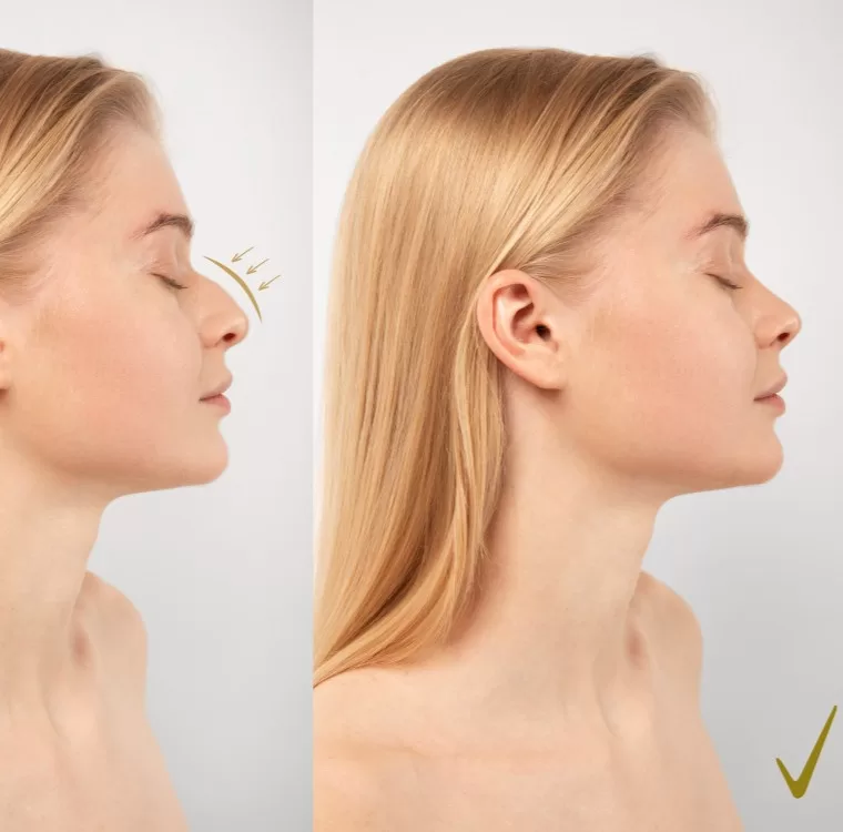 An ideal candidate for non-surgical rhinoplasty is someone seeking refinement rather than reduction. It’s suitable for addressing issues like non-surgical rhinoplasty for dorsal hump, non-surgical rhinoplasty for droopy tip, or non-surgical rhinoplasty for low radix. It can also be used for nose tip refinement without surgery or to enhance definition through nasal bridge augmentation (filler).